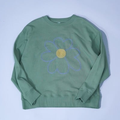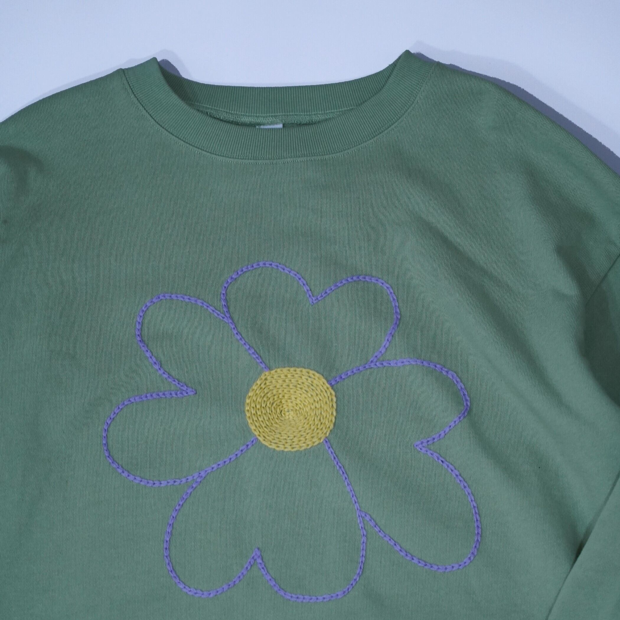 CC "FLOWER with LOVE" HAND EMBROIDERY SWEAT SHIRT -GREEN-