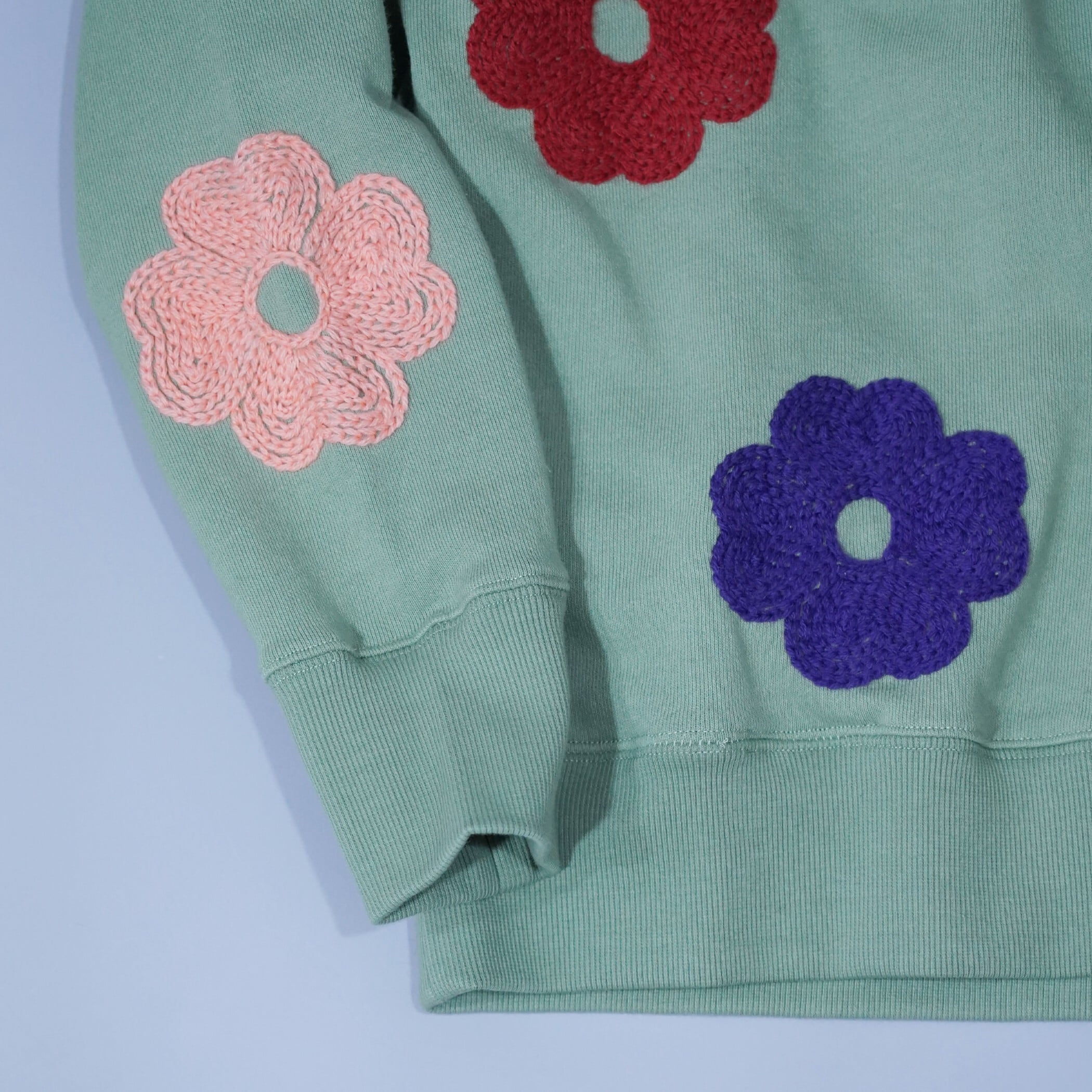 CC"FULL BLOOM" HAND EMBROIDERY HOODIE -GREEN-