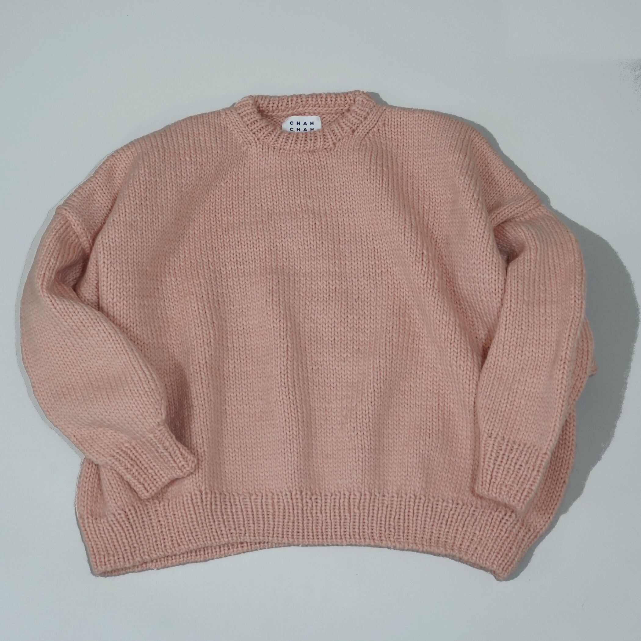 DOLMAN SLEEVE BIG WOOLLEN HAND KNIT -BABY PINK-