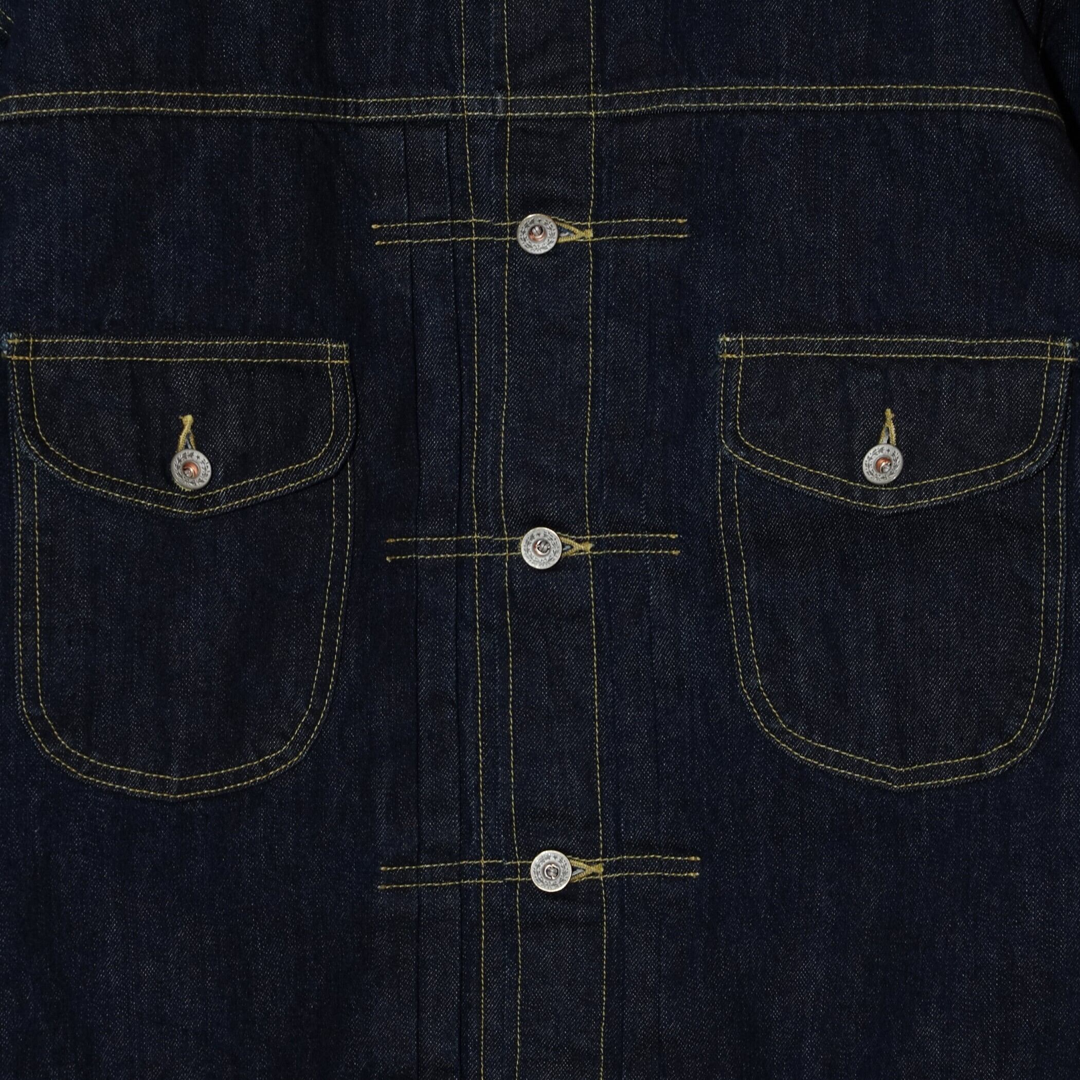 生地にはVINTAGEデニム製品を細部まで研究し,リプロダクトした14ozの国産セルヴィッジデニムを使用。異なる数種類のムラ形状の糸を使いタテのシャープなムラ感を再現。