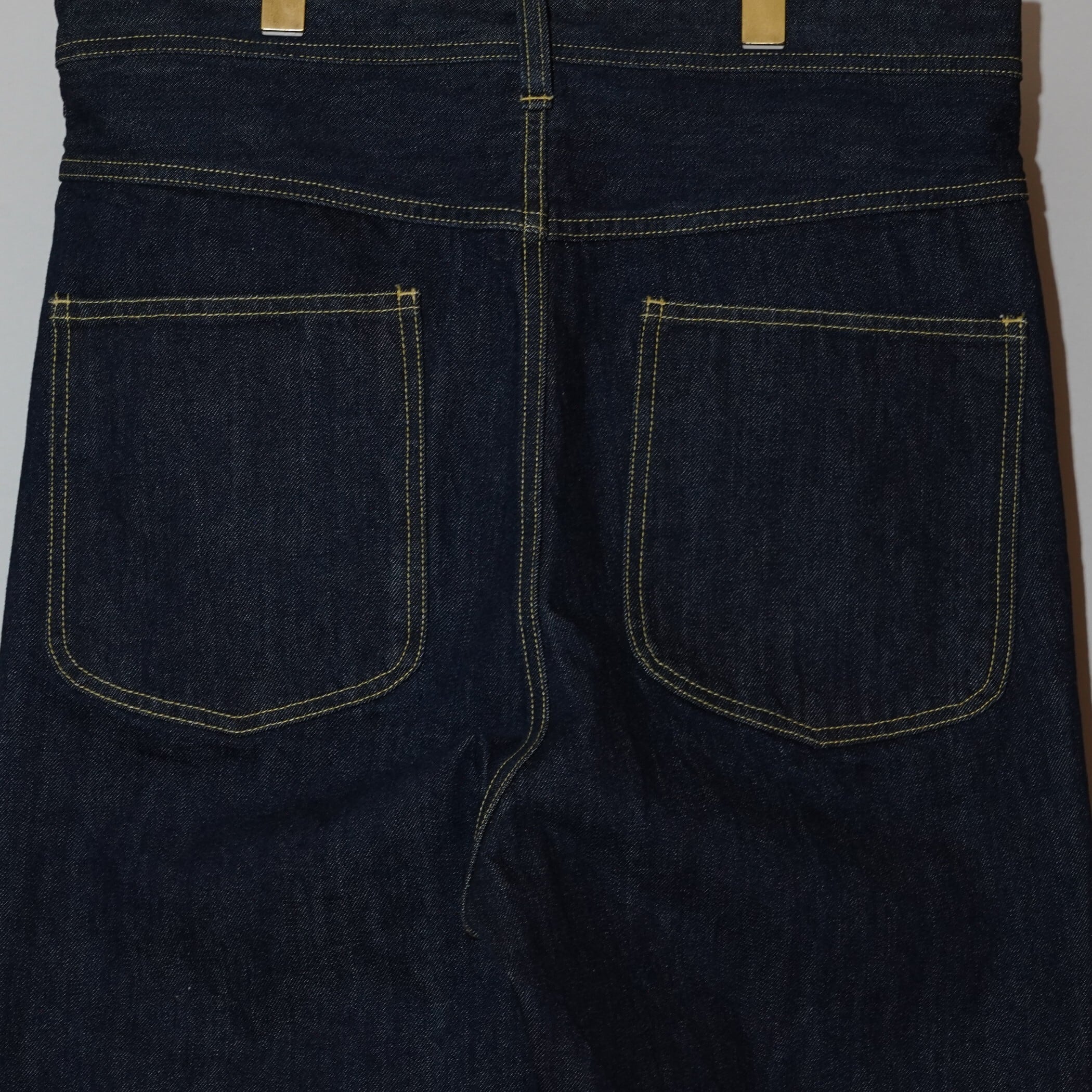 生地にはVINTAGEデニム製品を細部まで研究し,リプロダクトした14ozの国産セルヴィッジデニムを使用。異なる数種類のムラ形状の糸を使いタテのシャープなムラ感を再現。