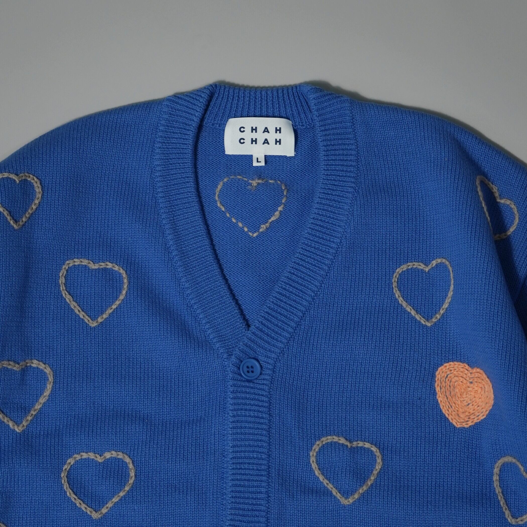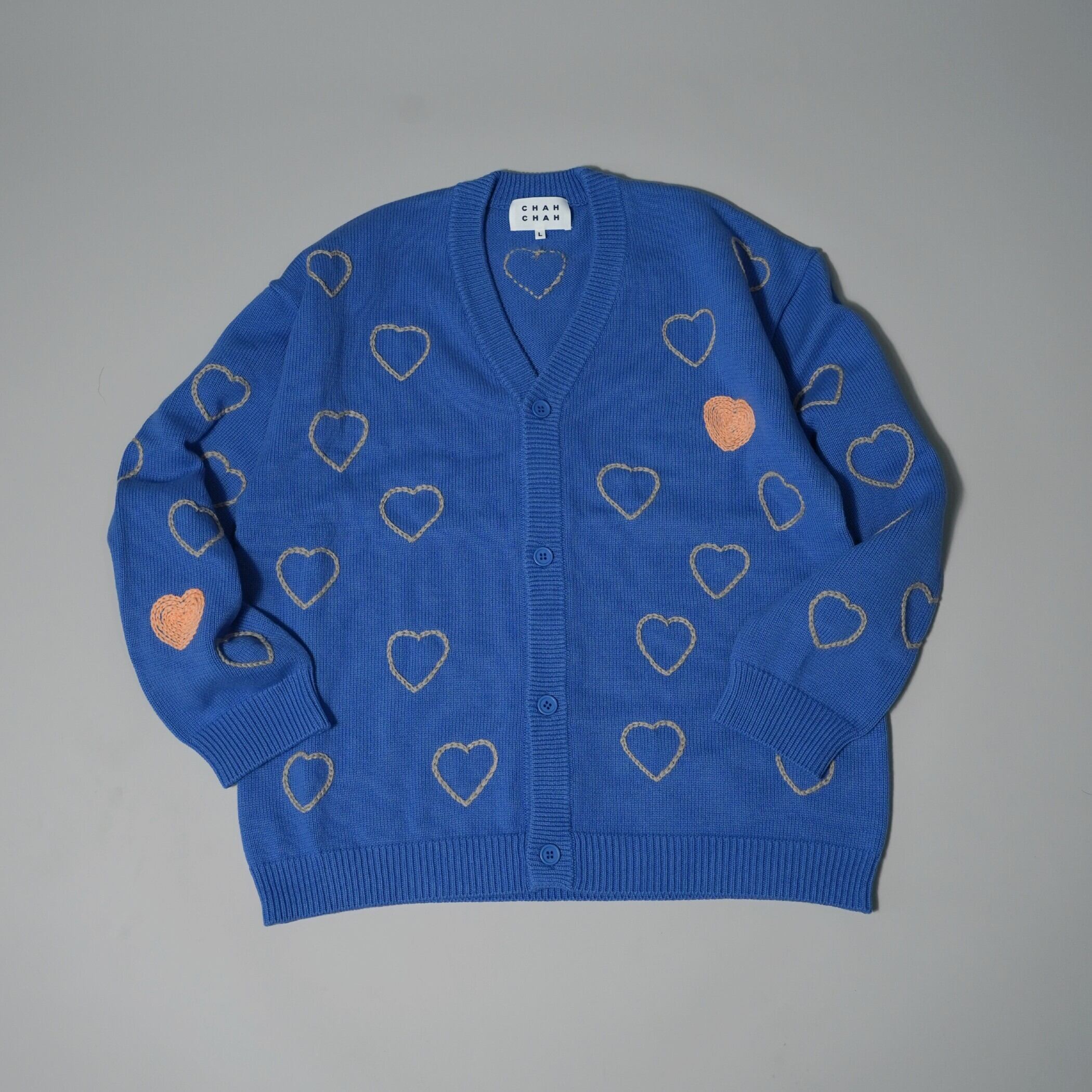 ChahChahのアイコンでもあるハートの刺繍が施されたハートエンブロイダリーカーディガン。