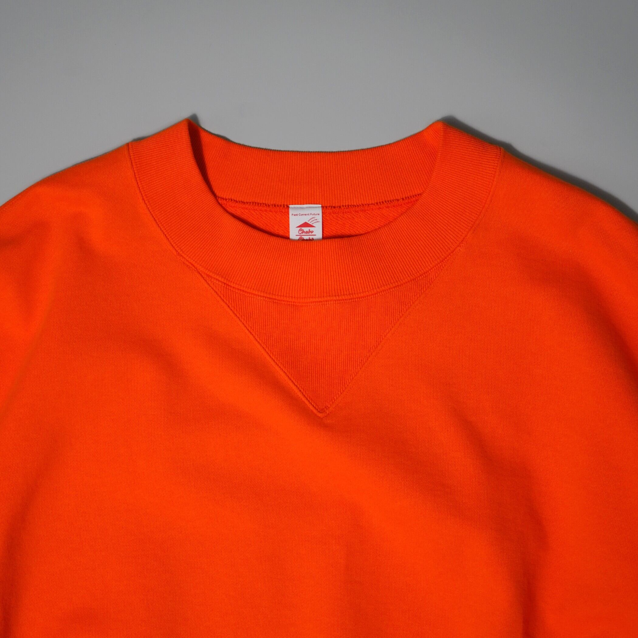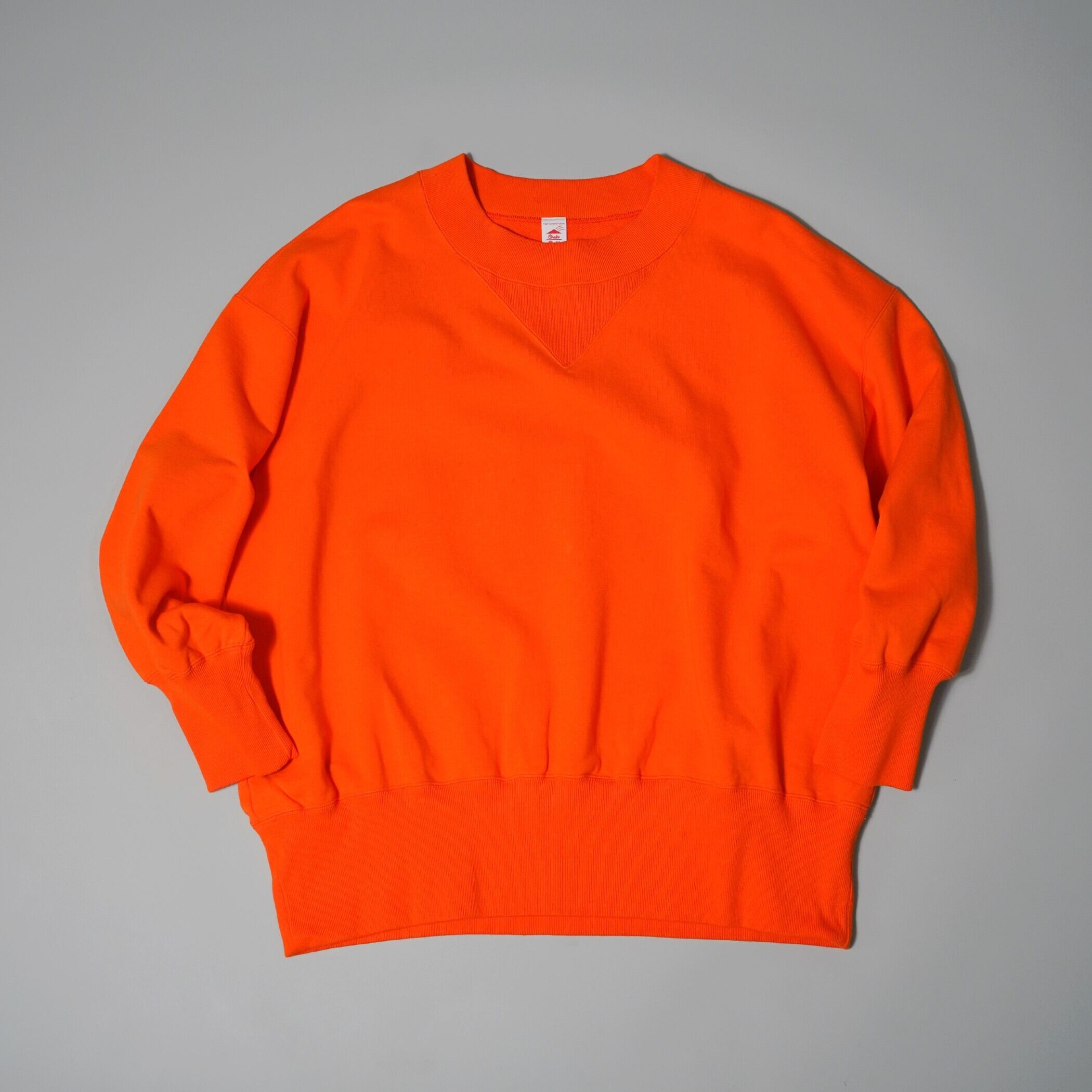 首周り(リブ,Vガゼット)や袖,裾のリブ幅を広くとったデザインポイントをつくり、ベーシックでありながらもどこか可愛気のあるスウェットシャツ。