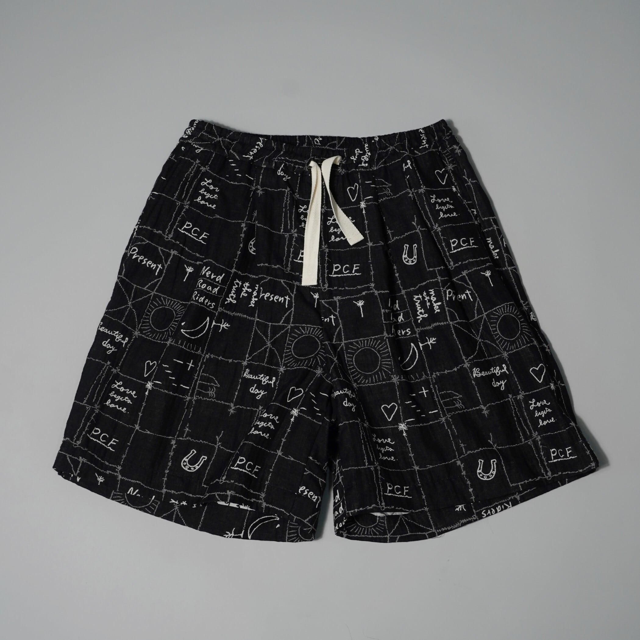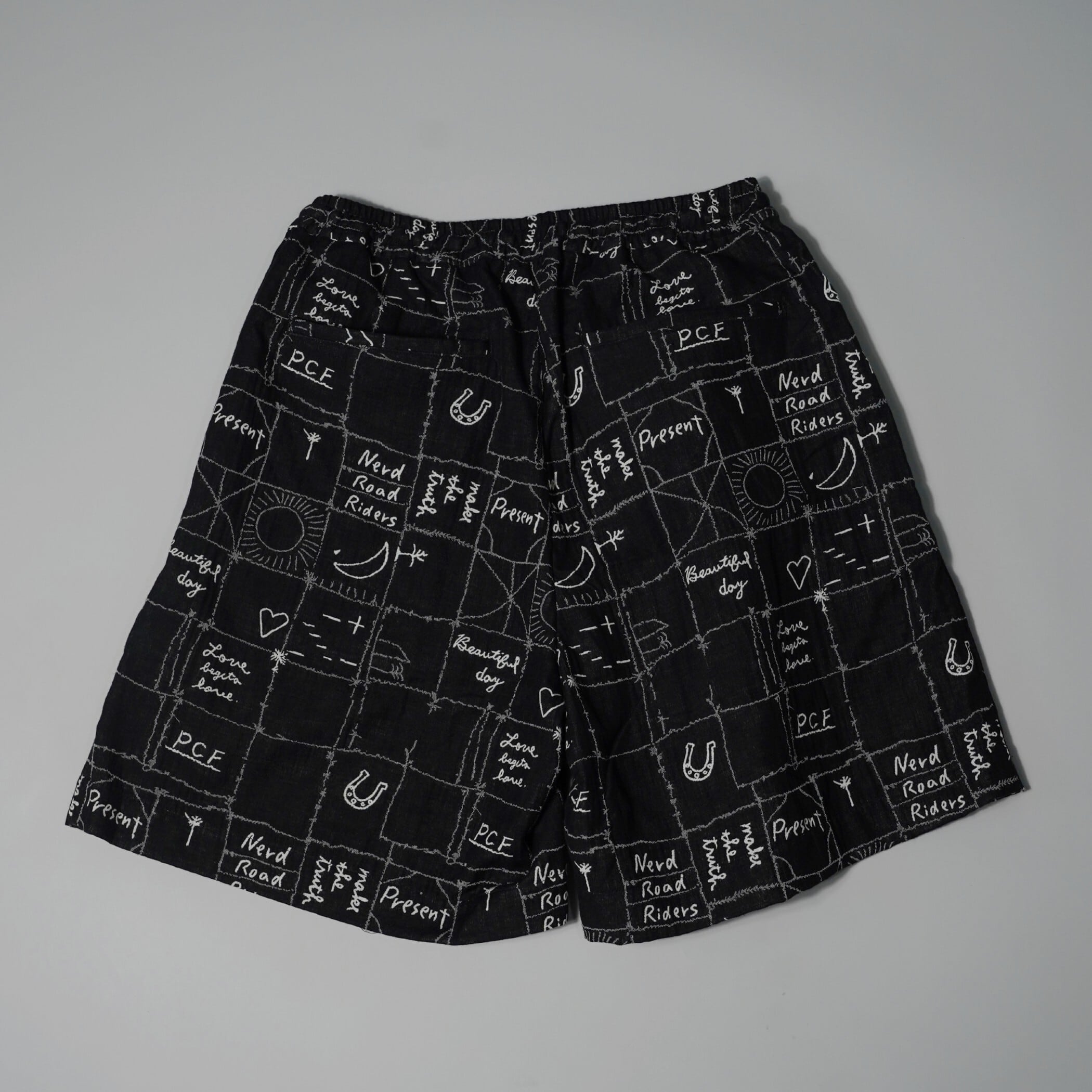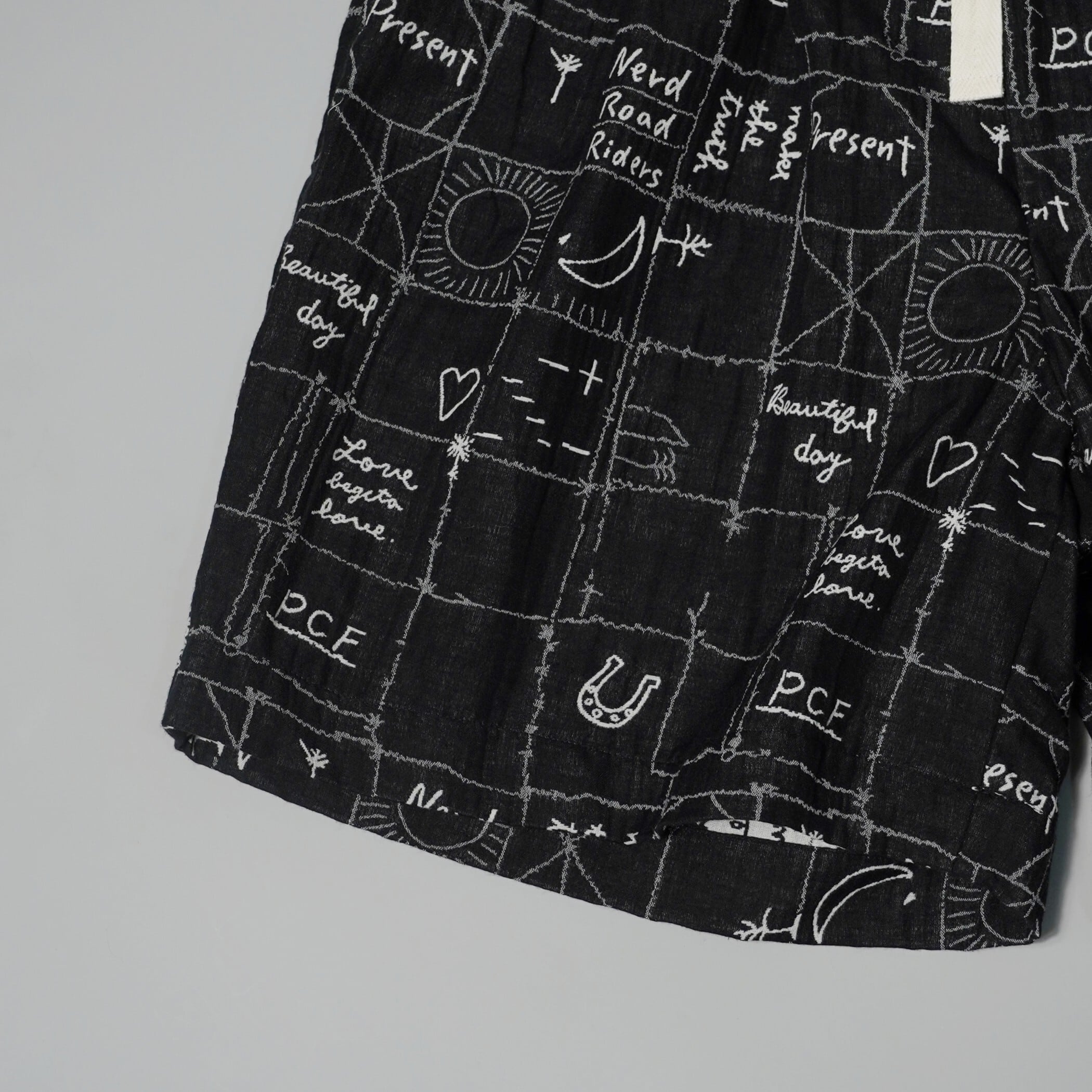 HAND DRAWING GR JACQUARD SHORTS -BLACK-